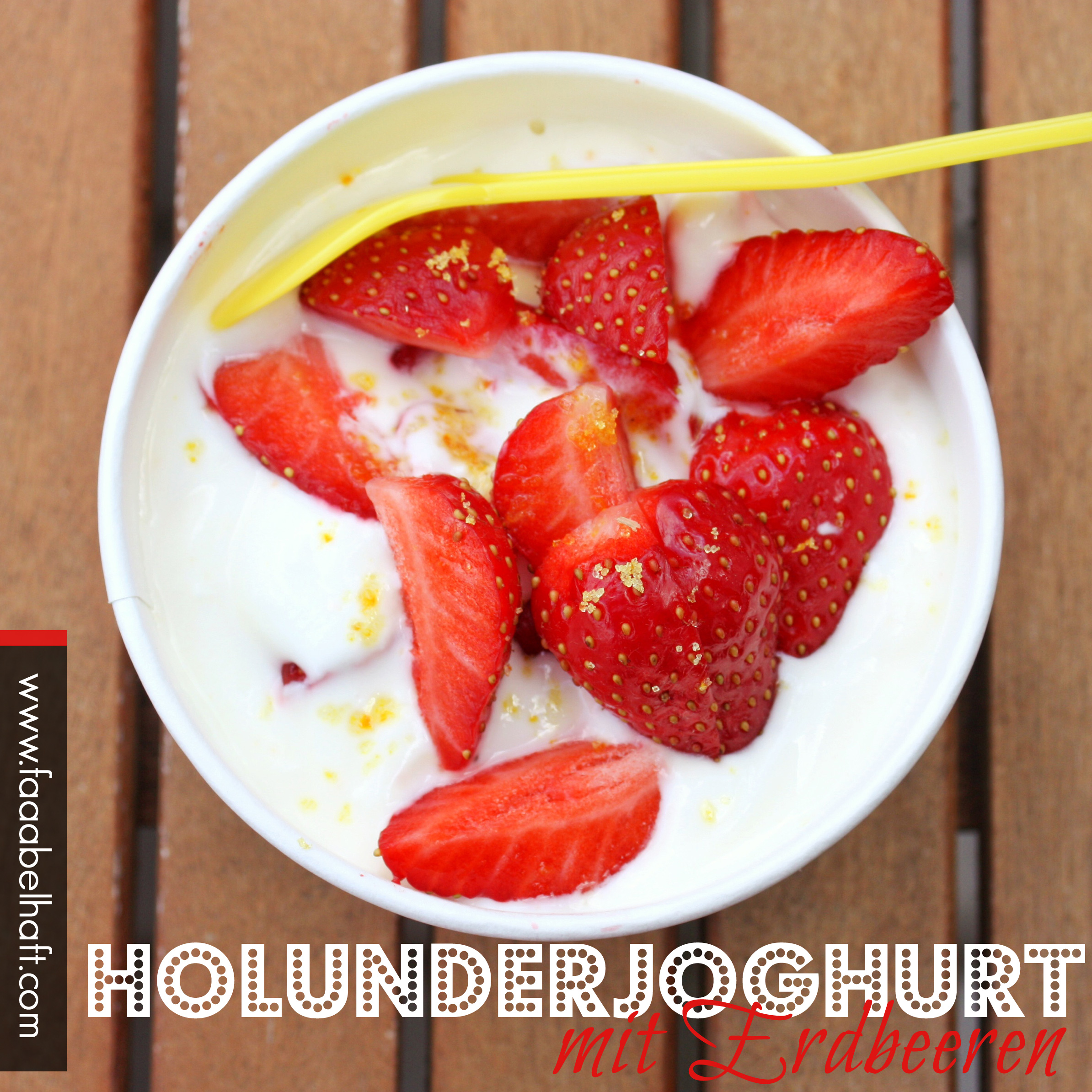 Für alle, die nicht neben einer Eisdiele wohnen oder eine Eismaschine ihr eigen nennen, gibt’s heute fruchtig-frischen Holunderjoghurt mit Erdbeeren.