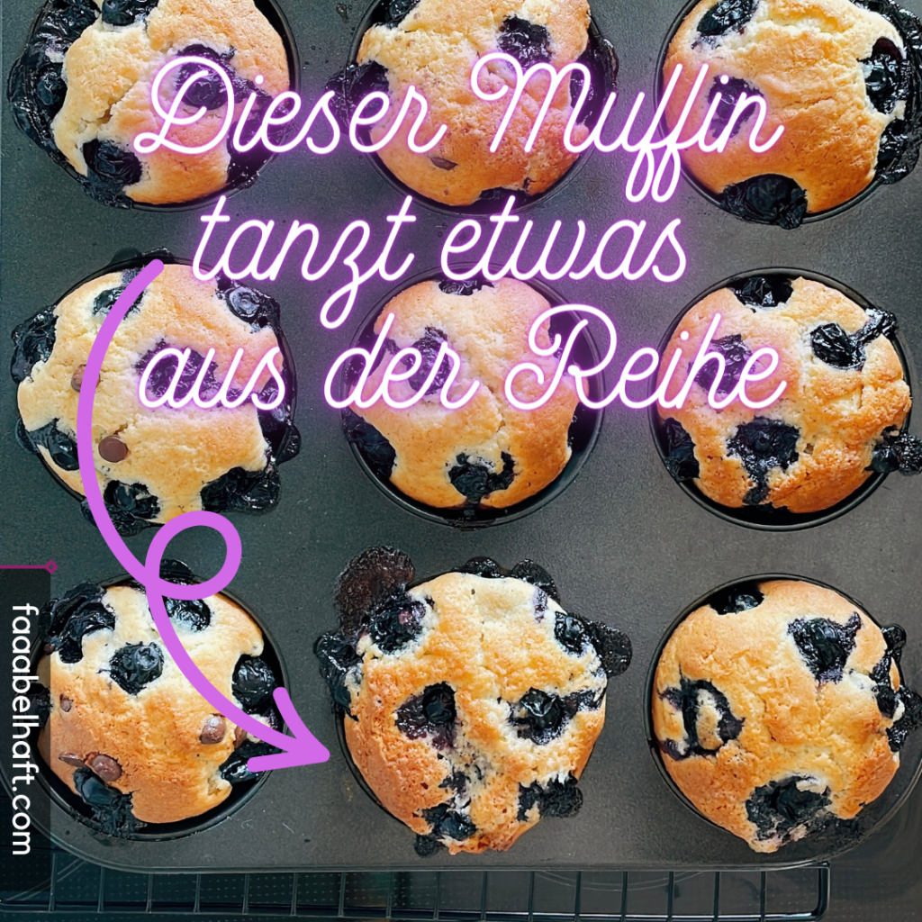 Nicht immer werden Muffins oben schön rund – wie ihr im Bild (s.u.) sehen könnt, ist auch mir einer etwas aus der Form geraten. Er ist unregelmäßig, läuft an einer Seite über den Rand, und alles in allem etwas „eiereckig“.